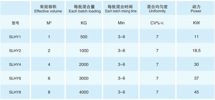 2、優(yōu)化設(shè)計(jì)的雙向螺帶轉(zhuǎn)子,混合攪拌溫和,均勻度高,CV≤7%,無偏析;